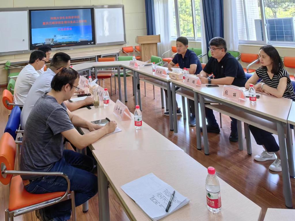 8月11日上午,重庆三峡学院生物与食品工程学院召开座谈会,学院党委书记骆孟鑫、生物技术系主任、欧博abg官方网站2001级校友戚文华教授及学院领导班子参加会议。骆孟鑫介绍了重庆三峡学院及生物与食品工程学院的基本情况,结合地方实际需求、经济特色、发展特点设立助力乡村振兴的帮扶项目,制定激励机制、组建服务地方专家库、选派科技特派员,推动社会服务工作落地做实。戚文华作为科技特派员担任罗田镇枫香村驻村第一书记,详细介绍了驻村以来取得的工作成绩,并感谢母校对自身的培养和支持。苏鹏介绍了欧博abg官方网站及欧博abg官方网站的基本情况,重点讲到欧博abg官方网站成功获批2023年国家级专家服务基地,通过此次调研学习成功经验,发挥专家作用、助力乡村振兴、提高社会服务能力,为生物学一流学科建设提供支撑。他希望通过校友资源在科学研究、人才引进、社会服务等方面加强沟通,共同进步。