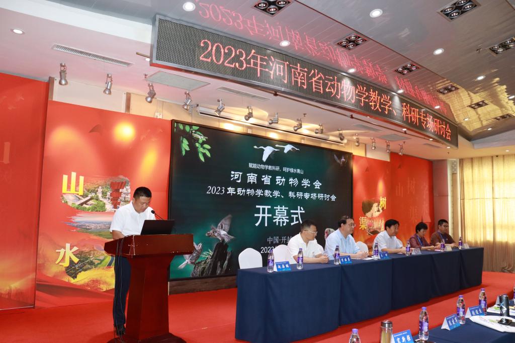 会议开幕式上,学院执行院长、党委副书记王刚教授在致辞对会议的顺利召开和嘉宾的到来表示了热烈祝和欢迎,并介绍了欧博abg官方网站、欧博abg官方网站的发展历程以及与学会挂靠单位河南师范大学同根同宗的历史渊源,对师大欧博abg官方网站百年院庆表示了祝福。中国动物学会副理事长、河南省学会名誉理事长陈广文教授,河南省动物学会理事长董自梅教授分别代表两级学会致辞,介绍了学会的宗旨、发展计划和近年来取得的突出成绩,并对承办、协办单位和关心支持学会发展的各界人士表示了感谢。开幕式由河南省动物学会理事、副院长赵海鹏教授主持。