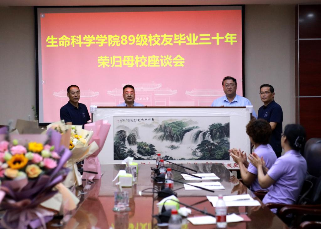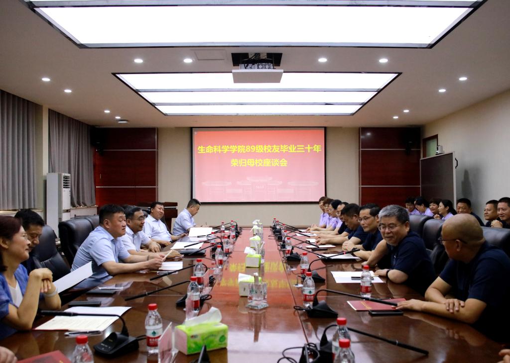 7月21日下午,欧博abg官方网站生物系89级校友毕业30年返校座谈会在学院B201会议室举行。欧博abg官方网站原校长宋纯鹏,89级辅导员、河南农业大学副校长尚富德,欧博abg官方网站副校长、欧博abg官方网站院长张立新,欧博abg官方网站副校长苗雨晨,开封市政协副主席苗琛,学院党委书记吴建伟,执行院长王刚及教师代表参加座谈会。会议由89级毕业生、棉花生物育种与综合利用全国重点实验室/省部共建作物逆境适应与改良国家重点实验室常务副主任安国勇主持。