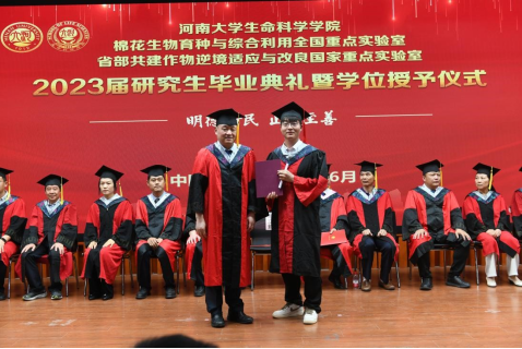 6月29日下午,欧博abg官方网站2023届研究生毕业典礼暨学位授予仪式在学院圆形报告厅举行。欧博abg官方网站副校长、欧博abg官方网站院长张立新、学院党委书记吴建伟、执行院长王刚、棉花生物育种与综合利用全国重点实验室主任周树堂、省部共建作物逆境适应与改良国家重点实验室/棉花生物育种与综合利用全国重点实验室常务副主任安国勇以及学院全体领导班子、学位评定分委员会成员、家长代表、教师代表以及2023届全体研究生毕业生参加典礼。典礼由吴建伟主持。