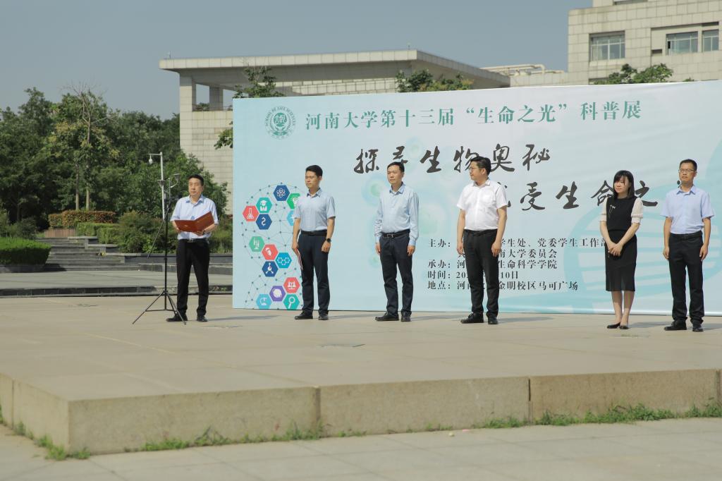 首夏犹清和,芳草亦未歇。6月10日,欧博abg官方网站第十三届“生命之光”科普教育活动在金明校区马可广场隆重举行。欧博abg官方网站学生处处长、党委学生工作部部长沙莎,校团委书记龚森,党委宣传部副部长陈旭,科学技术研究院副院长邓浩,欧博abg官方网站党委书记吴建伟及学院师生、科普志愿者参加本次活动。开幕式由欧博abg官方网站党委副书记宋永鹏主持。