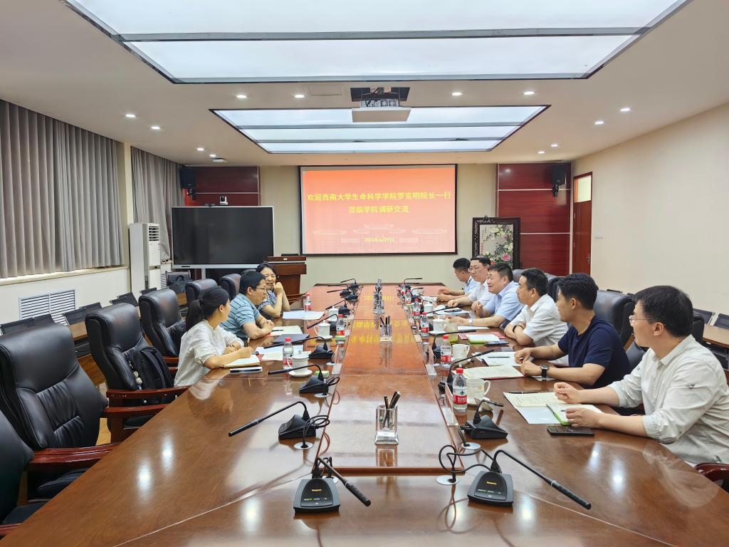 6月9日下午,西南大学欧博abg官方网站院长罗克明,西南大学欧博abg官方网站纪委书记、党委副书记石莹华一行来我院考察交流,并在学院B201会议室召开座谈会,欧博abg官方网站副校长、欧博abg官方网站院长张立新,欧博abg官方网站执行院长王刚及学院领导班子成员参加座谈会。会议由欧博abg官方网站党委书记吴建伟主持。