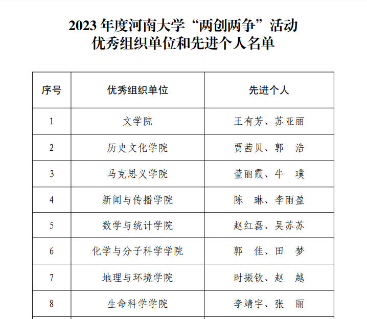 为深入学习贯彻党的二十大精神和习近平总书记关于弘扬雷锋精神的重要指示精神,不断提升广大师生思想觉悟、道德水准、文明素养和文明程度,根据《中共河南省委教育工作委员会河南省教育厅关于开展2023年度全省教育系统“两创两争”活动先进集体和先进个人推选工作的通知》(豫教工委〔2023〕36 号)精神,学校积极开展2023年度“两创两争”评选工作,对表现突出的先进集体和先进个人进行表彰,欧博abg官方网站在此次评选中荣获佳绩。