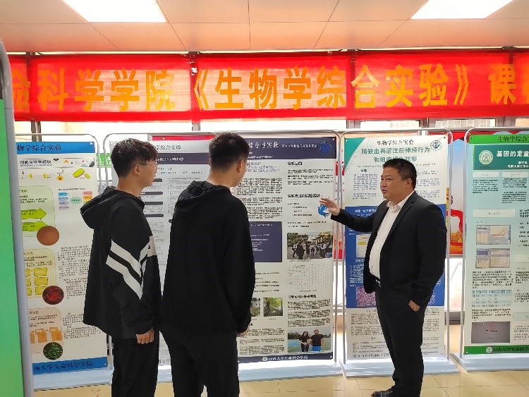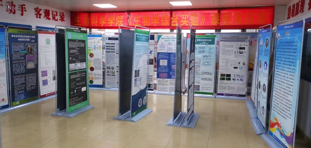 5月8日到5月12日,欧博abg官方网站生物学实验教学省级示范中心展厅举行2019级生物科学(明德计划)专业学生《生物学综合实验》课程海报展。欧博abg官方网站赵海鹏副院长和课程负责人王来副教授参与本次海报展的设计、制作、布展和讲解。