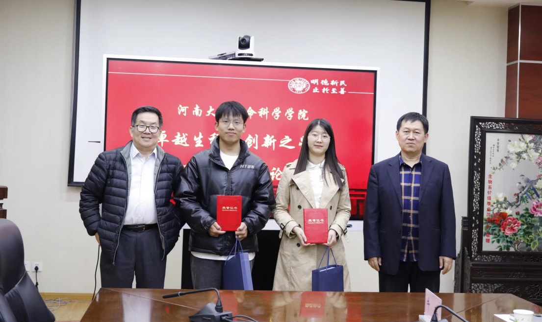 白文龙、洪军对两位研究生的报告进行了点评,与主讲人交流了关于药物作用机制、血脑屏障突破和纳米药物的靶向作用等方面的专业内容,肯定了主讲人站在学生视角总结凝练开展科研工作的技巧和经验,并为他们颁发了纪念证书和纪念品。