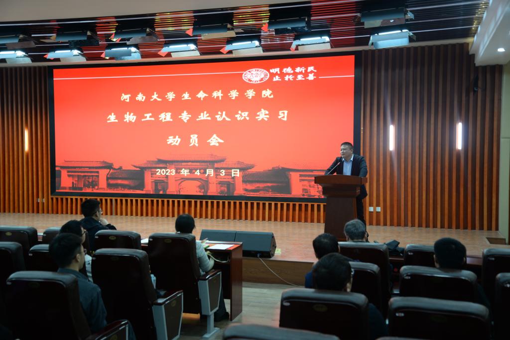 4月3日,经过精心筹备,欧博abg官方网站生物工程专业认识实习动员会在学院圆形报告厅三楼举行,实习工作正式启动。副院长赵海鹏、党委副书记程亚敏、实习指导教师组全体成员和全体实习学生参加会议,会议由生物工程系主任、实习队领队兼队长刘宇鹏教授主持。
