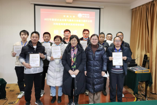 1月11日,欧博abg官方网站承办河南省高素质农民培育计划之新型农业经营与服务主体能力提升示范(果蔬种植)培训班结业典礼顺利进行。结业典礼在中州银座商务酒店举行。欧博abg官方网站成教办主任李黎、植物科学与技术系副主任苏亚蕊博士、班主任孙少光及此次参与培训的学员们参加了结业典礼仪式。仪式由苏亚蕊博士主持。