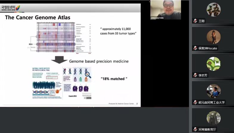 开幕式后,外方专家进行了9场学术报告,分别是美国科学院院士Luis Herrera-Estrella教授“作物营养调控主题报告”,美国亚利桑那大学David W Galbraith教授“利用单细胞测序技术解析植物发育调控,助力抗逆高产作物培育”,昆士兰大学Jimmy Botella教授带来的“基因编辑改良作物重要性状,加速作物新品种培育进程”,约克大学Seth Davis教授带来的“农艺性状和植物生物钟”, 东卡罗莱纳大学Baohong Zhang教授带来的“CRISPR基因编辑技术在作物遗传改良中的应用 ”,澳大利亚联邦工业组织 Chunji Liu带来的“小麦抗茎基腐病研究进展及展望” ,韩国国家癌症中心Jong Bae Park带来的“韩国国家癌症中心的肿瘤蛋白质基因组学研究”, 韩国国家癌症中心Yun-Hee KIM带来的“肿瘤微环境中激酶分泌相关的癌症研究进展 ” ,韩国仁荷大学Soonjo Kwon教授带来的“机械和电刺激增强NK细胞杀瘤活性的研究”。