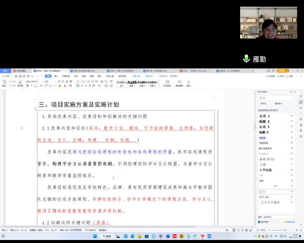 为聚焦本科教育教学综合改革和人才培养模式创新,进一步凝练具有较强针对性、较高理论与实践价值且富有创新性的研究课题,12月3日下午,学院通过腾讯会议在线召开本科教学改革研究与实践项目提升会议,中原教学名师、河南省教学名师工作室主持人谷艳芳教授和副院长、欧博abg官方网站教学名师赵海鹏教授作为指导专家出席,近期拟申报校级教改项目的教师参加会议,会议由教务办公室主任张要军主持。
