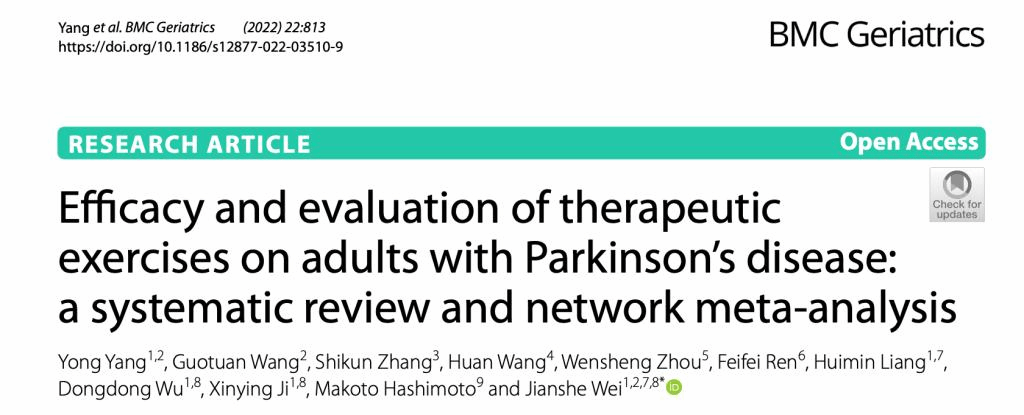 2022年10月21日,欧博abg官方网站脑科学研究所魏建设教授研究团队在国际医学顶级期刊BMC Geriatrics(一区Top, IF = 4.070)发表了题为“Efficacy and evaluation of therapeutic exercises on adults with Parkinson’s disease: a systematic review and network meta-analysis”的最新研究论文,揭示了不同运动方式和类型在帕金森病运动和非运动症状疗效改善方面的综合评定效果。