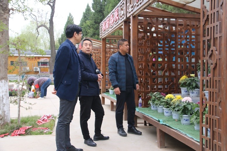 清明时节,春和景明,3月31日下午我院党委书记吴建伟与菊花课题组组长王子成教授一行到汴京公园就我院参与协办的第四届中国开封“秋菊春展”展览活动现场指导工作。