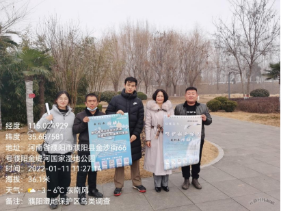 1月9日,回到家乡濮阳的韩建琛表达了想在濮阳黄河段开展生物多样性保护科普宣传工作的想法并得到了肯定,在学院、河南省动物学会的支持协调下,与濮阳上述部门取得了联系并得到了支持。1月11日-15日,以符合当地疫情防控要求的为前提,在上述部门的大力支持和配合下,韩建琛、张慧营携相关宣传海报,在保护区和湿地公园进行了鸟类与鱼类资源保护宣传,并开展生物资源调查,涉及郎中乡、渠村乡、习城乡、梨园乡等。