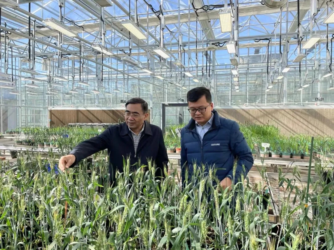 在欧博abg官方网站抗逆改良中心高通量作物表型平台高大的人工气候室内,一排排挺拔的小麦和低矮的节节麦相映成趣。