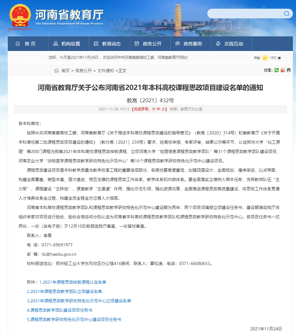 近日,河南省教育厅公布河南省2021年本科高校课程思政项目建设名单,欧博abg官方网站与马克思主义学院共建,由张向东教授主持的“思政课程与课程思政联合研究示范中心”入选河南省2021 年本科高校课程思政教学研究特色化示范中心立项建设。