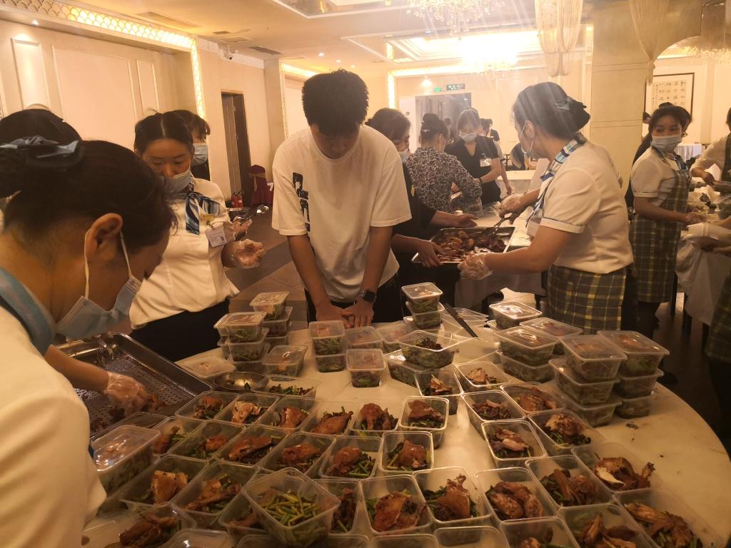 “或许这些对一个受灾区域根本无法解决多少问题,但如果这份饭菜到了官兵的手里,他们能有力气多解救一个家庭,一个村民,那对我们来说这个支援活动就拥有了巨大的意义。”丁柏云同学说道,“出发前酒店的一位叔叔告诉我:‘取之于民,用之于民。’能在安稳日子里长久的享受生活,也就有责任在国家最急需的时候尽出自己的一份力。我想每一位中国人,都像我一样渴望为灾区能够伸出援手,为灾区做出一份贡献。”