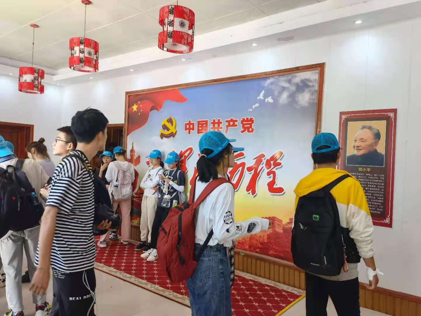 活动伊始,实习指导老师们带领2020级本科生参观了嵩县爱国主义教育基地,向同学们讲述了中国共产党百年奋斗的光辉历程。嵩县红色革命教育基地总共分六个部分,包括辛亥革命时期,土地革命时期,抗日战争时期,解放战争时期,抗美援朝时期和新中国建设时期。这六个部分展示了不同时期嵩县革命军人留下来的文物和革命战斗的故事。回望波澜壮阔的嵩县近代史,无数嵩县的英雄儿女在中国共产党的领导下,毅然决然的投身到反帝、反封建的斗争中去,为中华民族的崛起而努力奋斗。实习指导老师们讲述的嵩县儿女奋斗史深深地打动了同学们,激起了他们无限的爱国情怀。
