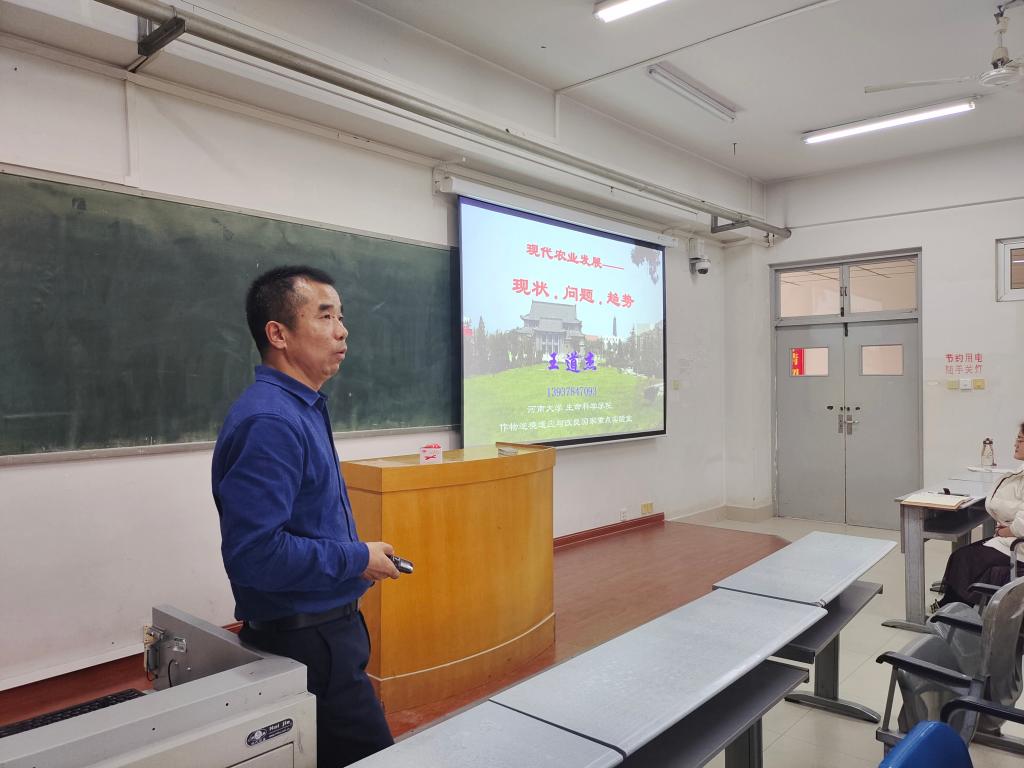 会议伊始,王道杰从现代农业的现状、问题、发展趋势和模式三个方面进行了详细讲解。