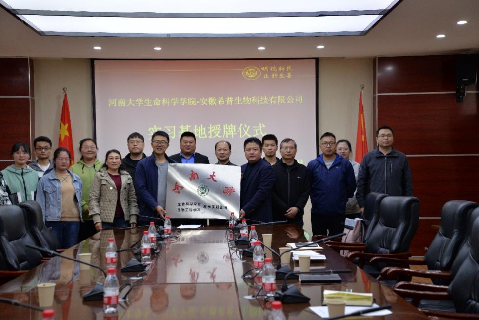 在授牌仪式上,赵海鹏介绍了欧博abg官方网站及欧博abg官方网站的基本情况,表示本实习基地的建设为我院生物工程专业学生的实习和就业搭建了良好的平台,希望双方建立友好合作长效机制,充分发挥各自优势,在人才培养、资源共享等多个方面加强合作,实现互惠共赢。赵大伟介绍了安徽希普生物科技有限公司的发展历史、科研情况、人才队伍及社会服务工作,希望以本次教学实践基地的建设为契机,加强同欧博abg官方网站在科研创新、实习实践等方面的合作。