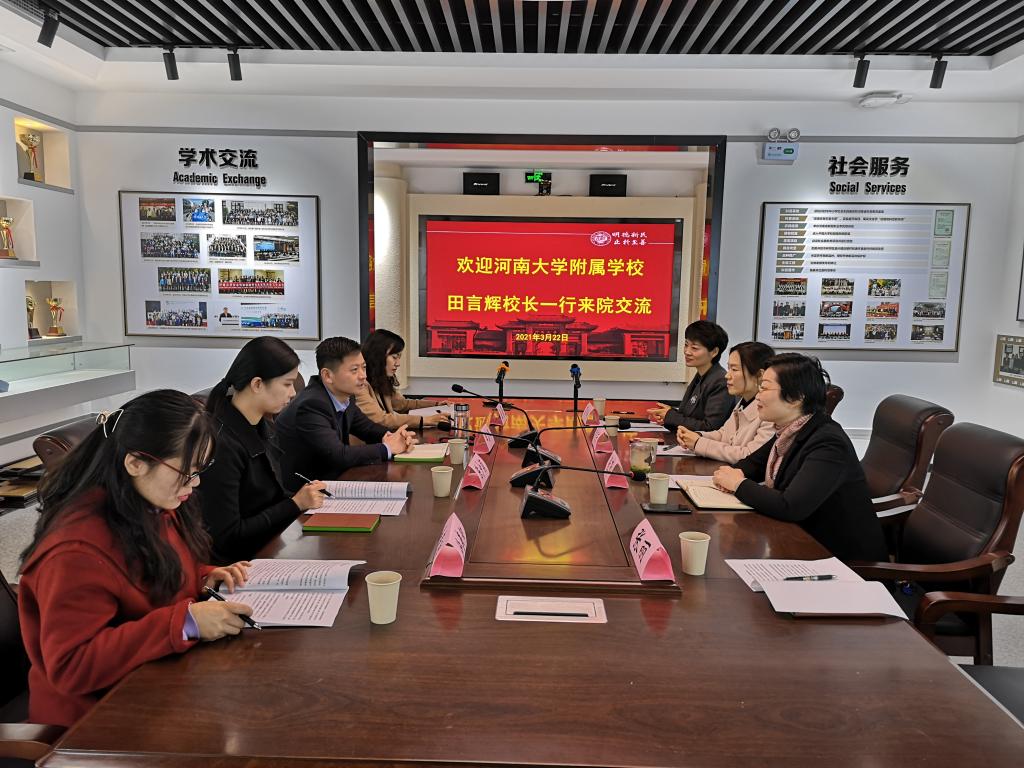 3月22日,欧博abg官方网站附属学校校长田言辉、骨干教师金蕾、陈少颖和徐春阳一行四人来我院访问,生命科学学院党委副书记张亚歌,院长助理、拔尖创新人才与国际交流办公室主任李志芳,青年教师蔺玲玲、张丽与来访人员在院史馆进行了座谈交流。会议由李志芳主持。