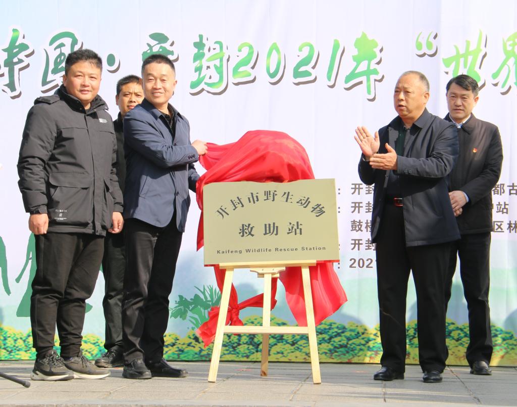 赵海鹏副院长代表我院出席开幕式并和开封市文化园区纪工委书记张歌、开封市林业局副局长王建勋一起为我院和市野生动植物保护站、汴京公园共建的开封市野生动物救助站揭牌,此救助站旨在贯彻落实习近平总书记关于黄河流域生态保护和高质量发展理念,维护开封市生物多样性以及生态安全,保护好野生动物栖息地,远离野生动物病原感染,其设立将为市野生动物救助提供了一个规范、有效的救助平台,