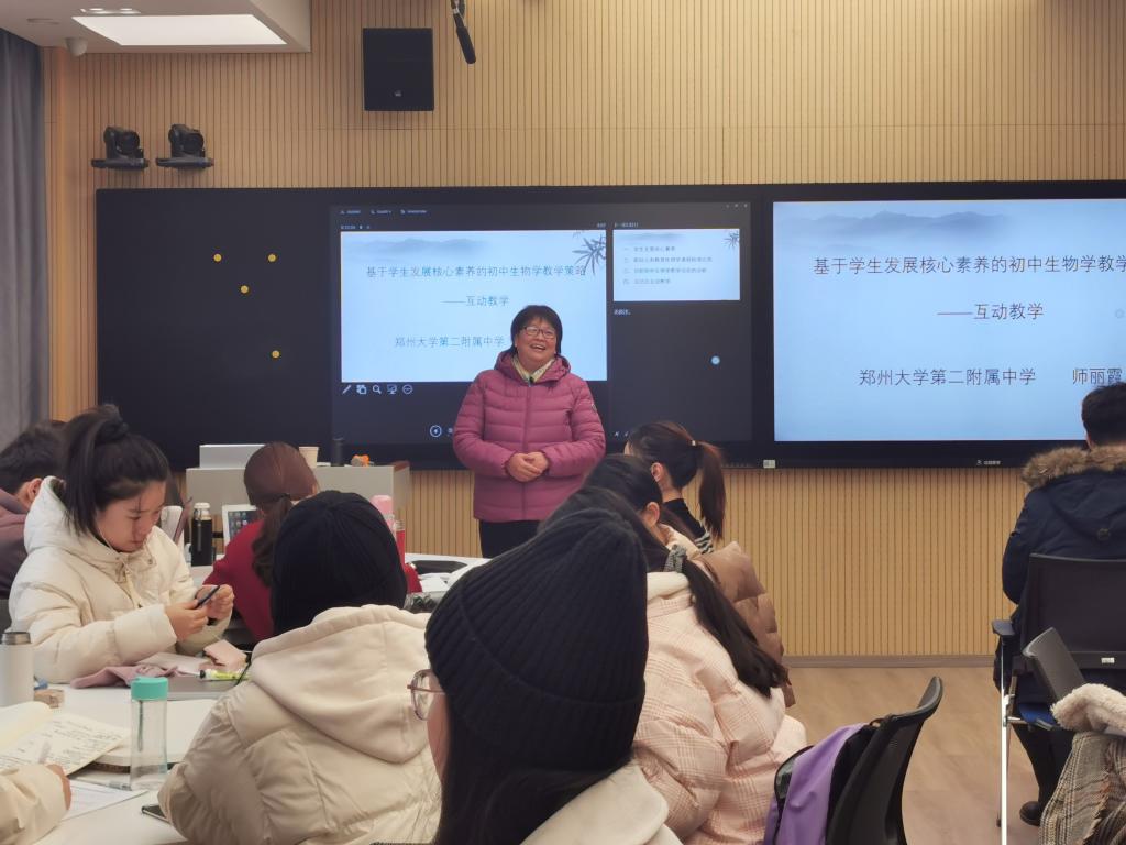 2020年12月20日上午,欧博abg官方网站学科教学(生物)专业组织的学术报告在生科院智慧教室305举行。郑州大学第二附属中学师丽霞在此作题为“核心素养视角下初中生物教学策略”的学术报告。此次报告会由张彤老师主持,欧博abg官方网站的学科教学(生物)专业全体研究生参与。
