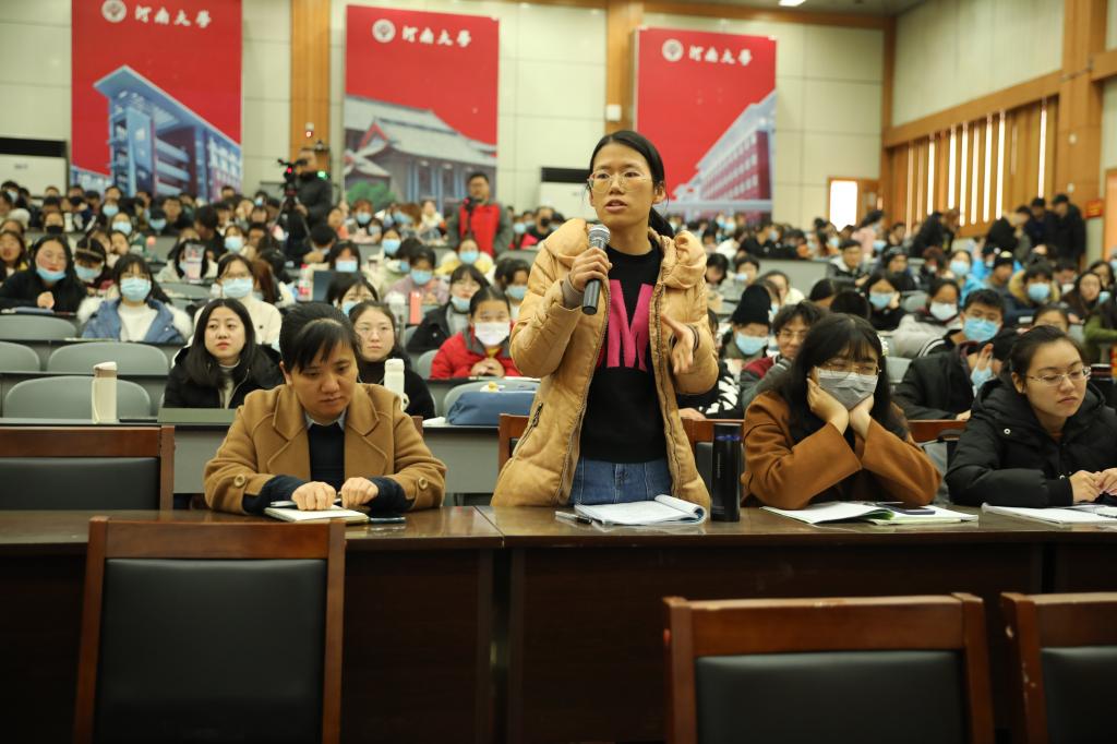 在交流互动环节,同学们认真倾听,积极发言。来自2019级生物科学明德班的夏天雨同学针对转运机制提出了一些细节性的疑问,张立新教授耐心聆听,并一一作出了细致的专业性解答。