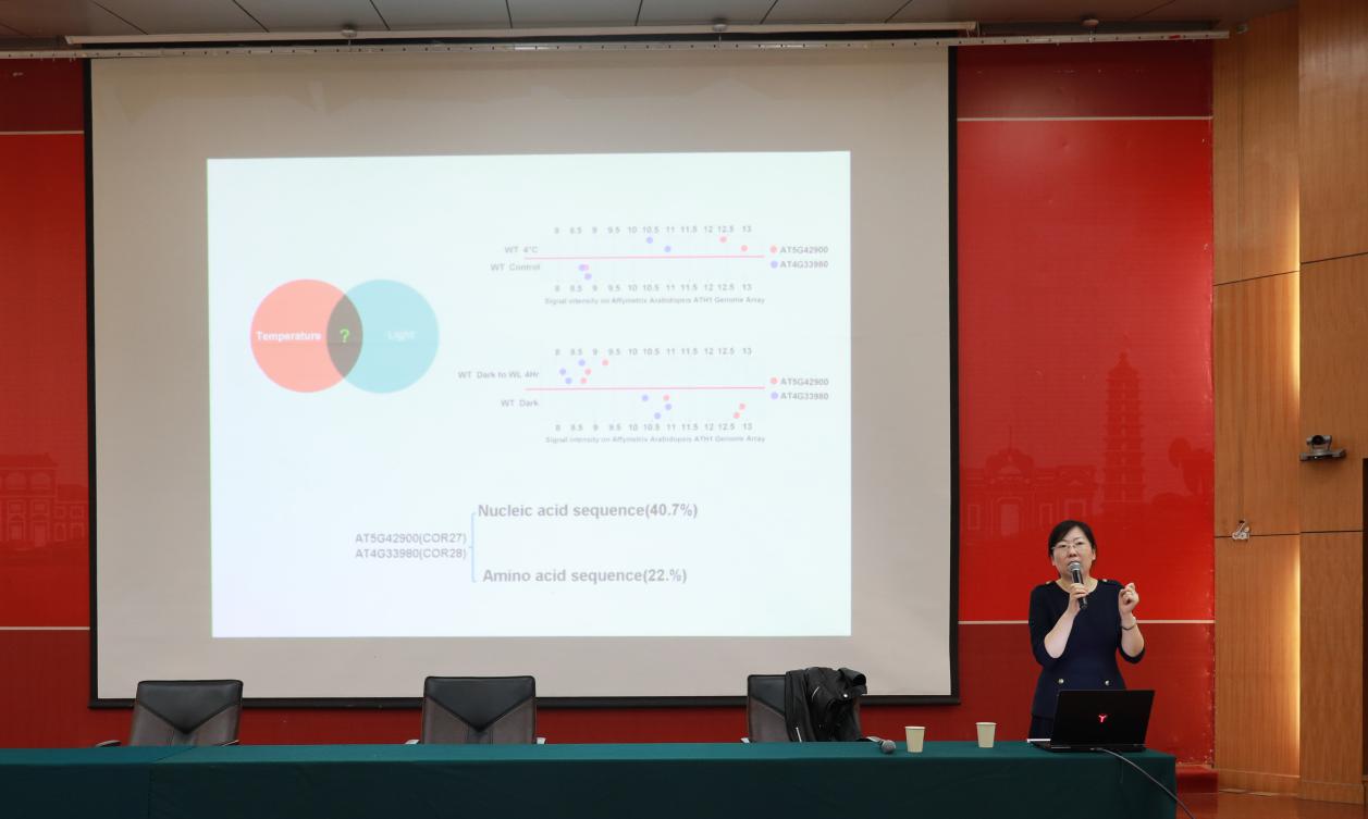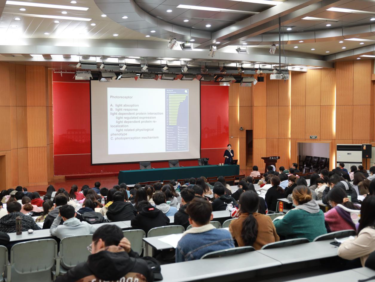 刘宏涛老师先以候鸟迁徙为例,从而引出外源光和内源生物钟协调表达控制生物行为变化这一话题。然后给我们介绍了一系列光遗传领域的应用以及光信号在研究植物领域最新的进展。刘老师还幽默风趣的给我们讲述了一些实验中发生的趣事,吸引了我们的注意力。在报告最后进行了师生问答环节,刘老师扎实的科研功底、丰富的理论知识给我们留下了极为深刻的印象。