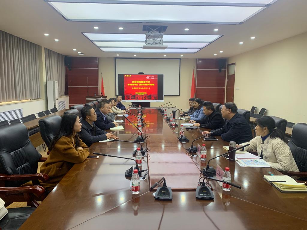 11月5日下午,河南师范大学欧博abg官方网站、数学与信息科学学院来我院交流师范生培养工作。来访者包括师大生科院副院长陈建军、副院长姜丽娜,数学与信息科学学院副院长黄广月及相应教学管理、学生管理人员8人,我院执行院长王刚、副院长赵海鹏、生物科学系主任刘凌云、副主任肖保林、团委副书记王松廷、教师教育课程组组长张彤等参与交流。交流活动在学院B201会议室进行,会议由赵海鹏主持。