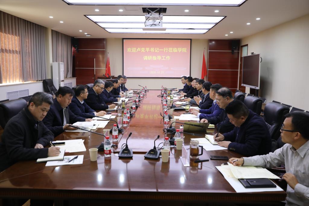 10月21上午,欧博abg官方网站党委书记卢克平带队到欧博abg官方网站调研,在学院二楼会议室与学院领导班子、国家重点实验室负责人等座谈交流,了解一流学科建设进展及下一步工作规划。学校党委办公室、组织部、发展规划处、学科建设处、人事处、实验室与设备管理处、医学院等部门相关负责人参加座谈。欧博abg官方网站党委书记赵东保主持座谈。