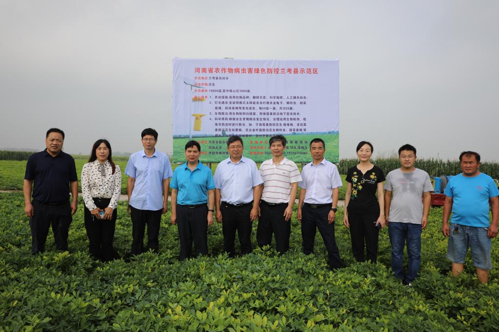 为进一步推进生物学一流学科建设,提升“逆境生物学”服务地方经济能力,助推欧博abg官方网站农学学科发展。8月23日,欧博abg官方网站党委书记赵东保、棉花生物学国家重点实验室主任周树堂、副院长王道杰一行到兰考县、周口市淮阳区等地实地考察花生、玉米等农作物病虫害绿色防控示范区建设。河南省植保植检站书记吕国强、河南省植保植检站测报科科长赵文新以及兰考县、周口市、淮阳区等相关部门负责人一同考察。