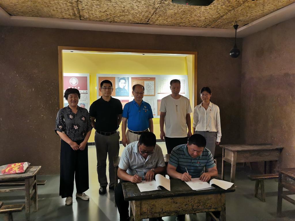 根据约定,赵海鹏、党义涛代表双方,在“纪念馆”里一间复建的抗战时期办学教室里签署了教育实习基地建设合作协议。双方将定期互通信息,总结交流经验,确保院校师范生协同育人工作的持续开展,同时共同面对潭头附中生物学教师短缺的问题。