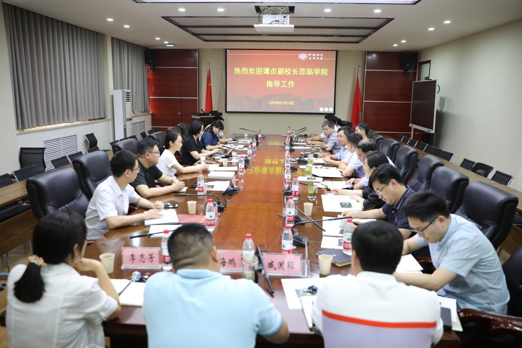 7月14日下午,副校长谭贞到欧博abg官方网站调研指导工作,国际交流与合作处领导班子陪同调研,欧博abg官方网站和重点实验室领导班子成员参加调研会,会议由欧博abg官方网站党委书记赵东保主持。