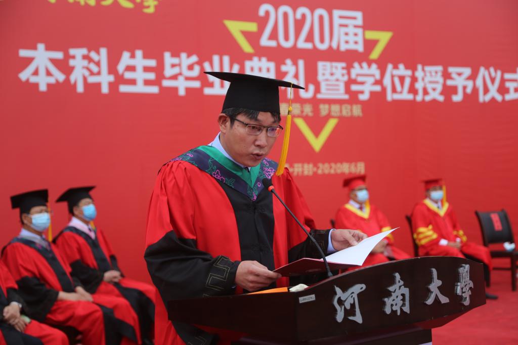 校党委副书记张宝明宣读《关于表彰2020年河南省优秀应届大中专毕业生的决定》和《欧博abg官方网站关于表彰2020年优秀应届毕业生的决定》。