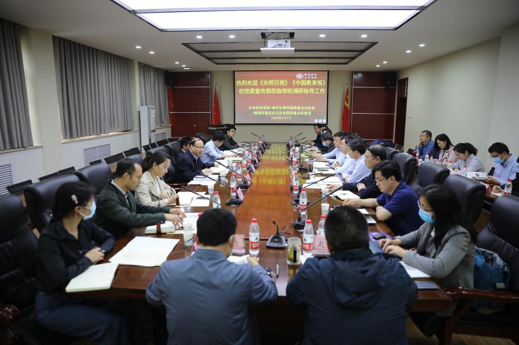 王明钦向媒体单位的到来表示由衷感谢,他指出,生物学科复建30余年来,自强不息,奋发有为,阔步迈入国家“双一流”建设行列,其发展过程中蕴藏的学科精神与欧博abg官方网站“自强不息、百折不挠”的精神内涵一脉相承,值得我们深入挖掘、广泛宣传。此次中央和省级媒体记者主动走进欧博abg官方网站专题采访调研“双一流”,使我们倍受鼓舞、倍感振奋。希望在媒体单位的大力支持下,继续深入挖掘好一流学科建设人物和事迹,更加出彩地讲好欧博abg官方网站“双一流”故事,助推学校“双一流”建设再上新台阶。