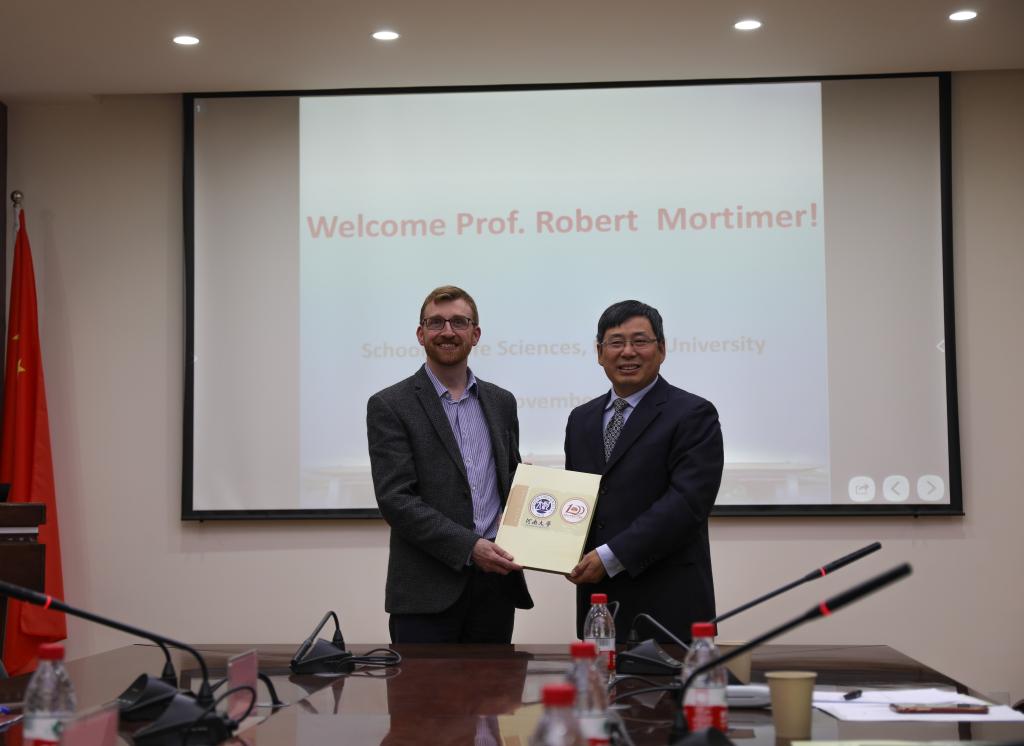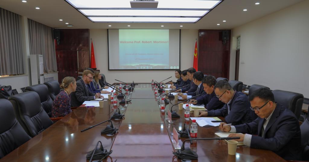 欧博abg官方网站党委书记赵东保代表学院对Robert Mortimer教授一行的到来表示热烈欢迎,简要介绍了学院的发展历程和“双一流”学科建设进展,客观分析了当前面临的机遇与挑战。赵东保表示学院十分重视国际交流工作,尤其是拔尖人才培养和科学研究均亟需与国外优秀大学携手合作,实现优势互补,共同发展。