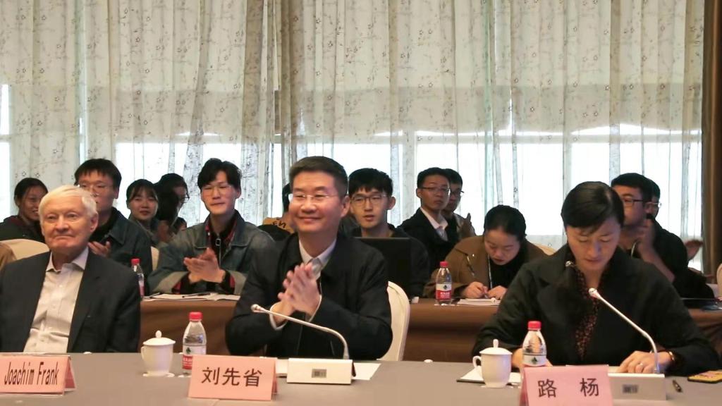 随后,诺贝尔奖获得者哥伦比亚大学Joachim Frank教授、刘先省副校长、生物物理学会纳米生物学分会秘书长北京理工大学黄渊余研究员,共同为中国生物物理学会纳米生物学分会秘书处揭牌,大家共同见证这一激动人心的时刻。揭牌仪式结束后,大家集体合影留念。开幕式由欧博官网科研处路杨处长主持。
