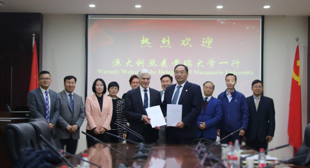 宋纯鹏校长首先在校长办公室会见了专程来访的麦考瑞大学代表团:科研副校长Sakkie Pretorius教授、医学与健康科学学院科研副院长Roger Chung教授、高等学位HDR伙伴关系和奖学金办公室副主任Kate Roth女士。宋校长对Sakkie Pretorius副校长领衔的麦考瑞代表团的到来表示热烈欢迎,并对两校前期的联合创新中心筹备工作表示充分肯定,希望双方以联合创新中心成立为新的契机,在生物学、农业、医学等多个相关领域加强对话,开展更深度的合作。