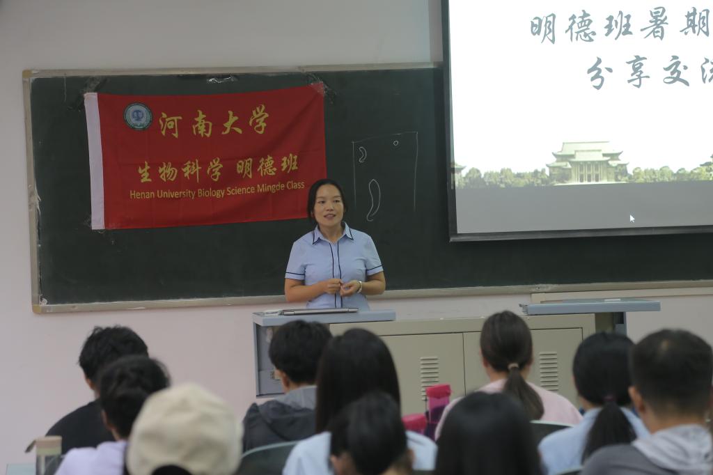 在交流会中,有过一年学习经历的美国交换生郭尚瑞介绍了美国高校的教学体制、评价体系和文化冲突,建议大家要坚定出国目标,保持头脑清醒,努力提升个人综合素质。参加暑期英国约克大学夏令营朱泽宇等12位同学,纷纷表示大大开阔了自己的视野,切身感受外国课堂氛围,通过分组讨论和试验,提升了同学们的专业素养和团队合作精神,同时也意识到英语学习的重要性,走向国际的前提是语言无障碍。参加南阳支教的季雨欣谈到,贫苦地区教学资源匮乏,老师稀缺,孩子们对知识的渴求强烈,呼吁大家做一个有温度、有态度、有气度的当代大学生。另有7同学分别参加中科院上海植物逆境生物学研究中心和西湖大学夏令营,收获良多,赵科举同学提出要重视对专业知识的学习,努力提高英语水平,加强科研思维训练,培养独立实验的能力;于学荣同学通过和西湖大学顶级学术大师的近距离接触,了解优秀科研人员和研究生的日常,客观分析个人优势和短板,更加确立了自己的奋斗目标,争取跻身一流的学术队伍,增强使命感。