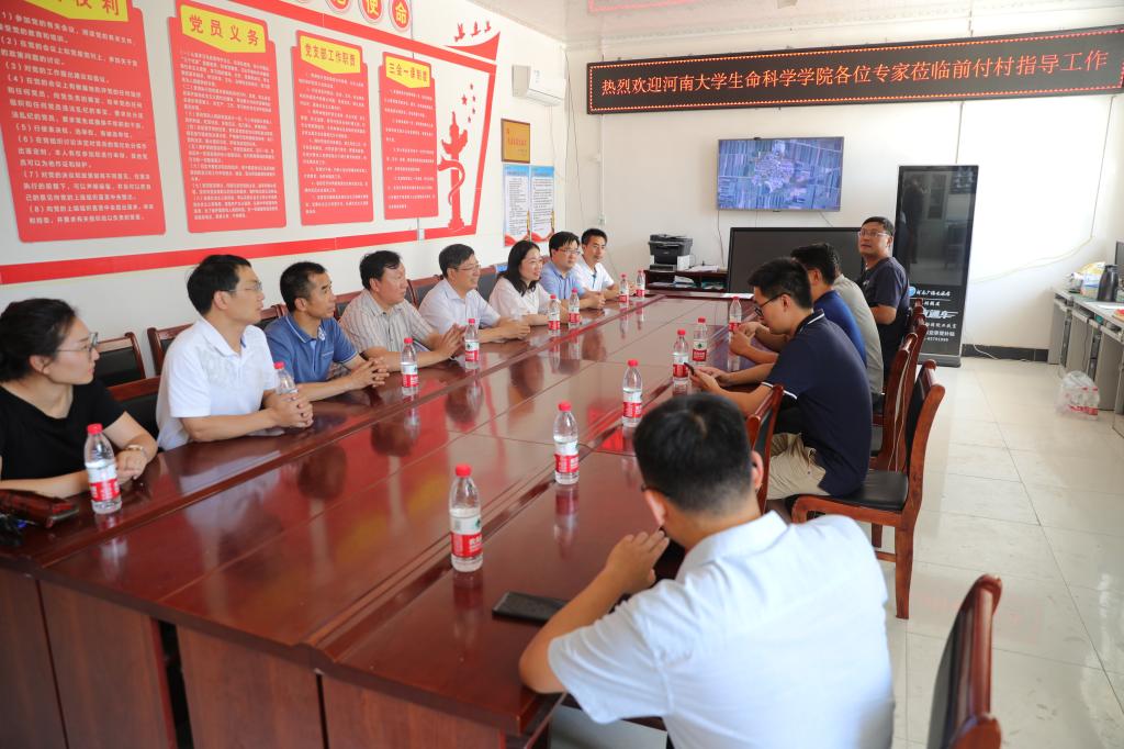 在村委会会议室,学院领导班子和欧博官网美术学院副院长驻村第一书记梁刚、驻村工作队及村两委同志进行了座谈交流。梁刚介绍了前付村“一条主线,两个重点,四大工程,稳步推进”的工作思路,重点介绍了学院产业帮扶项目南美白对虾养殖、优质西瓜育种等开展情况,对学院提供智力和技术支持表达感谢。
