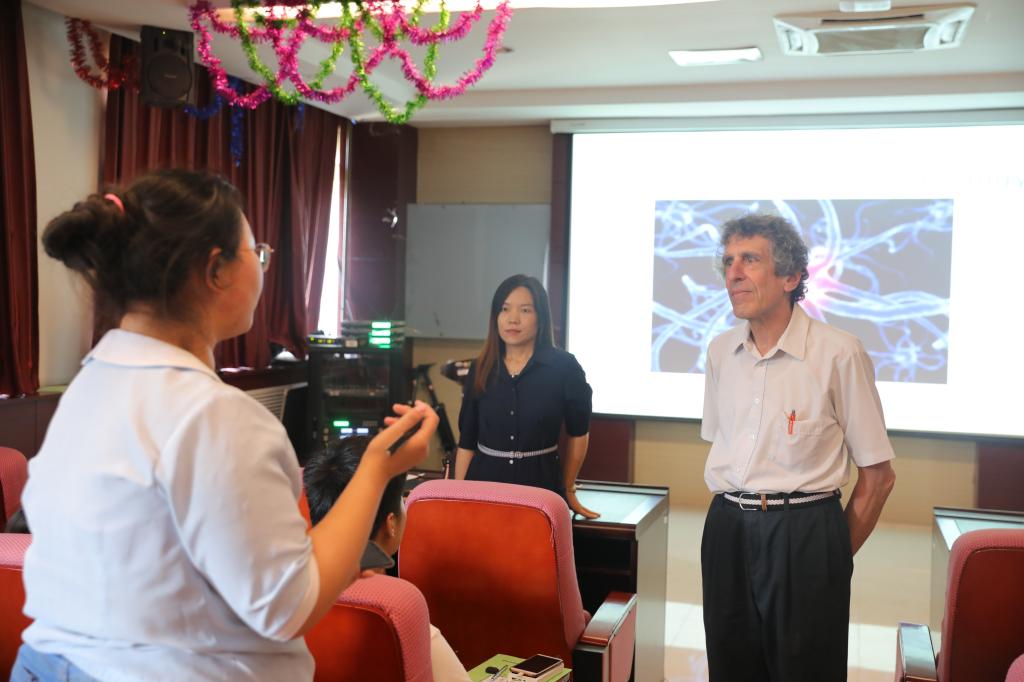 在互动环节,针对与会同学提出的“做生物学研究将来就业难”、“如何发现生物学兴趣”等问题,Michael教授结合自己的经历对每个问题都进行了详细的回答并给予了学生极大的鼓励,“Be Confidence, Be curious,带着自信和好奇,坚定的走下去”。