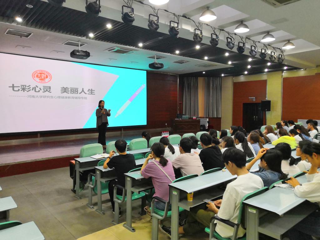 为进一步加强研究生心理健康教育,切实提高广大研究生的健康发展意识和心理健康水平, 5月29日晚,欧博abg官方网站举办研究生健康教育讲座,研究生工作部副部长、教育管理办公室主任刘婷应邀作《七彩心灵 美丽人生》专题讲座。讲座由学院党委副书记张亚歌主持,研究生辅导员杨翠玲、王丰老师带领欧博abg官方网站、植物逆境生物学重点实验室200余名博硕士研究生聆听了专题讲座。