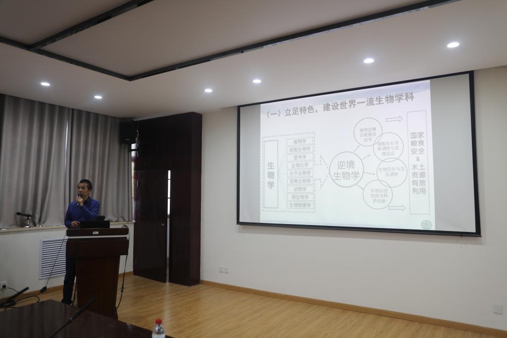 赵东保首先欢迎河南农业大学的各位领导前来我院“传经送宝”,并简要介绍了学院基本情况。副院长王道杰从建设目标、学科基础、实施情况、推进措施等四个方面介绍了欧博abg官方网站生物学一流学科的建设情况。