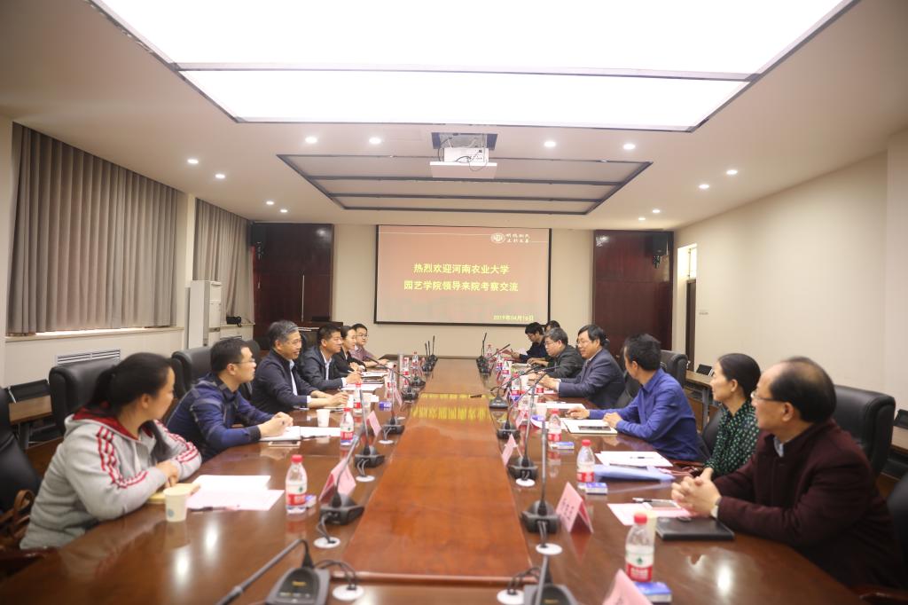 2019年4月16日下午,河南农业大学园艺学院院长冯建灿教授携学院郑先波主任、胡建斌主任、谭彬主任、贺巍主任、杜南山主任等一行六人到我院考察交流。