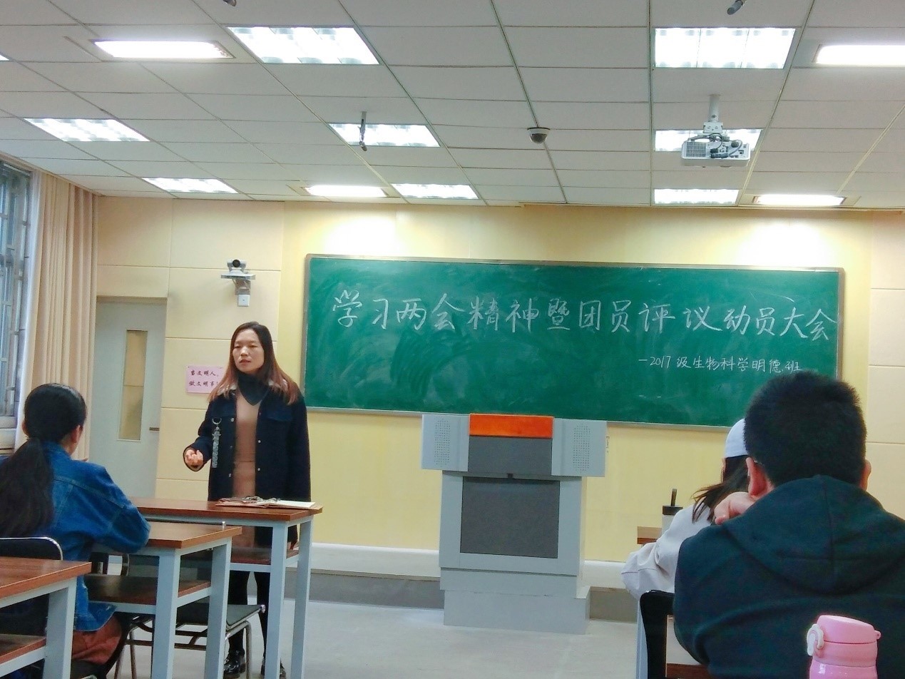 为学习领会两会精神,动员同学竞选优秀团员干部的积极性,明德班于3月23日开展主题班会。2017级辅导员王松廷老师宣读优秀团员干部竞选规则与落实方案,极大增强同学们的竞选积极性。班主任老师就欧博abg官方网站校长宋纯鹏、欧博abg官方网站党委书记卢克平在两会上的提议,展开中原民生问题和全方位育人思想大讨论。同学们各抒己见,结合自身实际,积极探讨问题的根源,并提出“实现自己的小价值,为社会主义添砖加瓦”的努力方向。