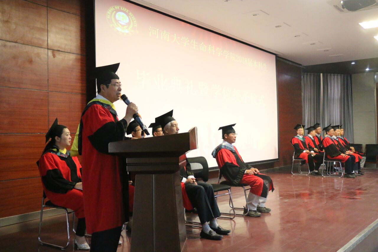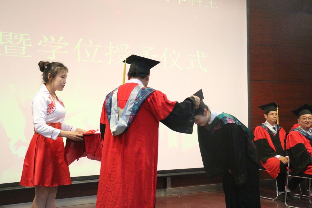 毕业典礼在庄严的国歌声中拉开帷幕。副院长闫文义宣读了2018届本科毕业生学士学位授予决定。院长万师强给全体毕业生拨正流苏,颁授学位,为同学们送上了最真挚的祝福,并与同学们一一握手,合影留念。