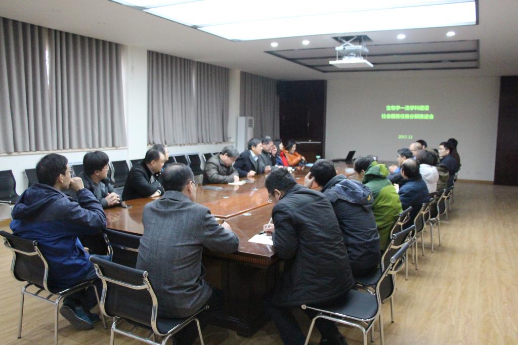 12月12日下午,欧博abg官方网站在B201会议室召开“生物学一流学科建设——社会服务任务分解推进会”。学院党政班子成员、各系室负责人、特聘教授代表及各课题组相关教师代表参加会议。会议由学院党委书记赵东保主持。
