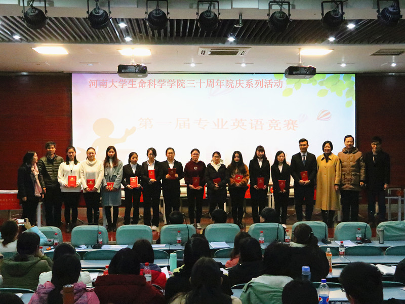 值欧博abg官方网站三十年院庆之际,为提高广大学生学习英语的积极性,展现优秀学子别样风采。12月7日下午,生命科学学院第一届大学生专业英语竞赛在圆形报告厅三楼举行。学院院长万师强、党委书记赵东保、副院长闫文义、安国勇以及党委副书记肖艳等领导班子成员莅临比赛现场。学院400余名研究生及本科生观看了此次比赛。