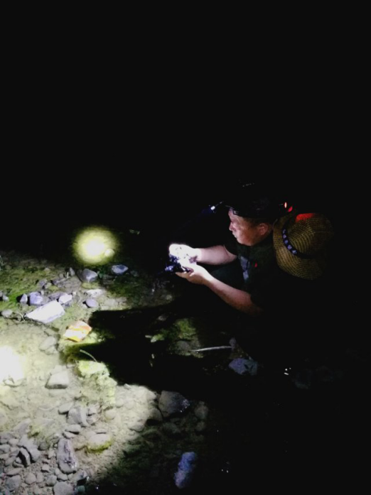 调查队员夜间开展两栖爬行动物资源调查