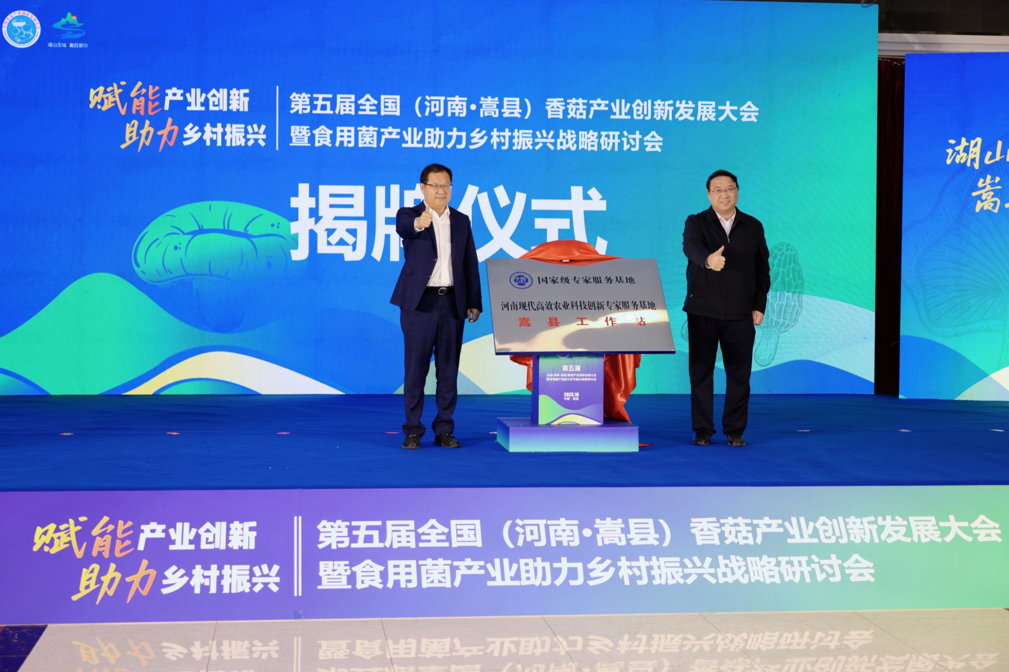 10月28日,第五届全国香菇产业创新发展大会暨食用菌产业助力乡村振兴战略研讨会在嵩县启动。欧博abg官方网站执行院长王刚,嵩县校地结对帮扶工作队队长、土木建筑学院执行院长张建伟,国家优青、欧博abg官方网站方敏教授,人才人事部、科学技术研究院、文化旅游学院、体育学院、欧博abg官方网站等单位相关负责人参加研讨会。会上,欧博abg官方网站执行院长王刚,嵩县县委书记、县长辛俊峰共同为“国家级专家服务基地——河南现代高效农业科技创新专家服务基地嵩县工作站”揭牌。研讨会期间,嵩县县委县政府领导与参会人员进行了深入交流。