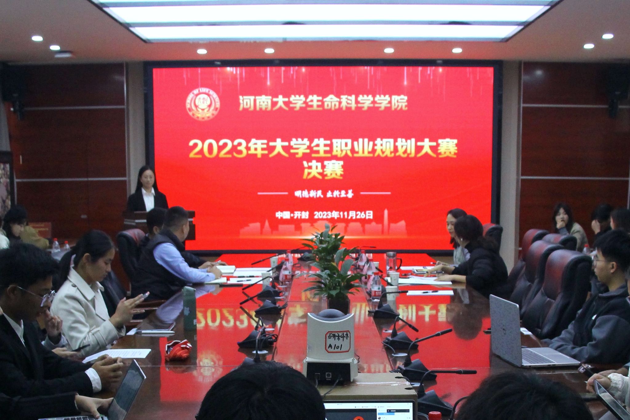 为进一步加强大学生职业发展教育,提升求职竞争力,11月26日,欧博abg官方网站在B201举办2023年大学生职业规划大赛决赛,47名本科生、研究生及留学生经过初赛选拔参加现场答辩。学院党委副书记宋永鹏、辅导员李靖宇、张丽、杨芯、宋晓峰担任评委,学生代表通过线上形式观摩学习。